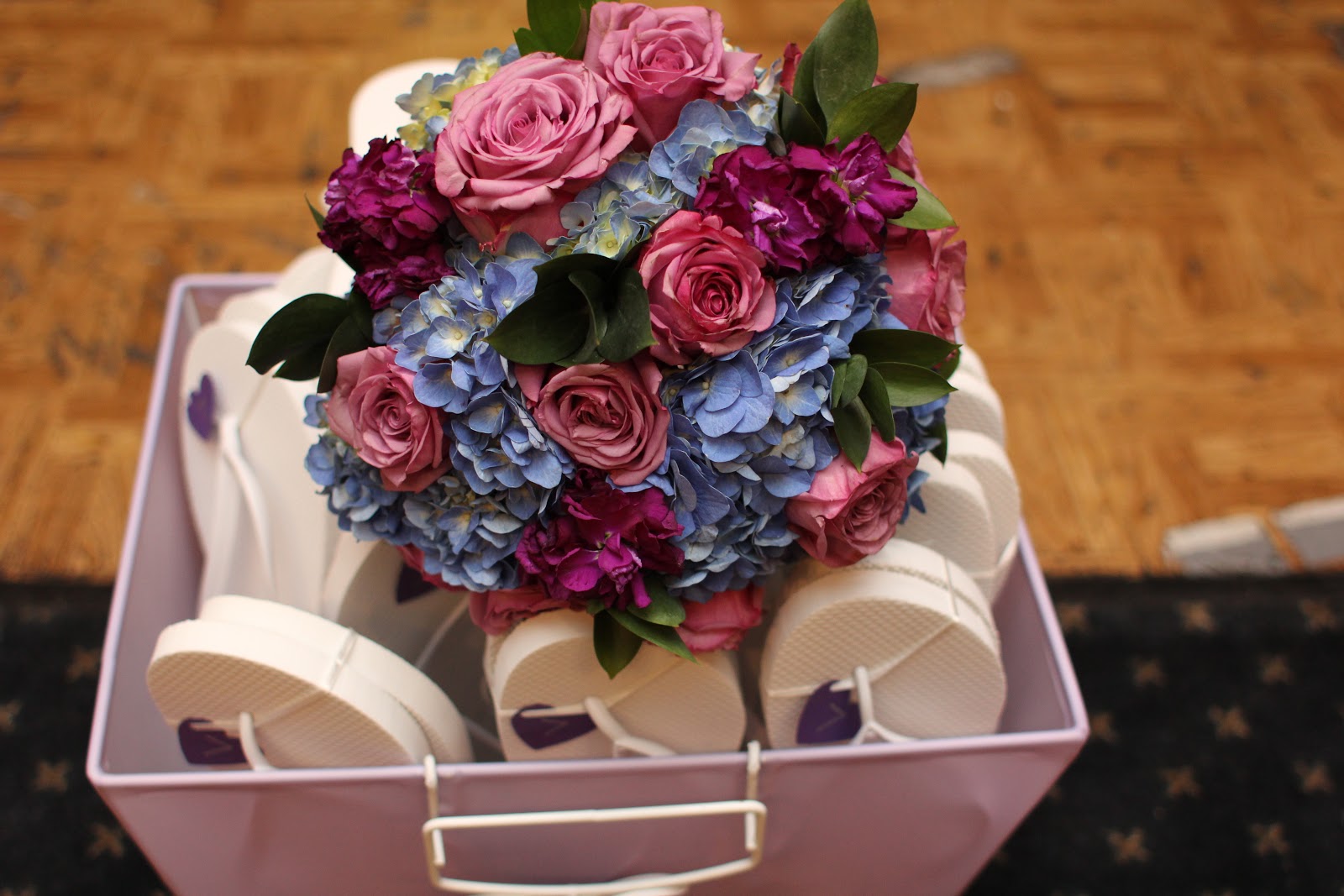 When I first met with Courtney and Scott about a year before their wedding, they had all sorts of ideas of what they wanted for their wedding. I had a feeling that their beagle Brandy (who is adorable!) would somehow be incorporated into their wedding. And sure enough, there she was at the portrait session, all decorated with a fancy bow. And let's not forget about the decadent cupcake display stacked layer upon layer with chocolate and vanilla cupcakes and decorated with a heart-shaped candy "S" on each one.